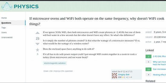 Now here’s where modern Wi-Fi gets completely insane: 2.4 GHz is the exact frequency a microwave oven uses to cook things. Our Wi-Fi is currently the exact same frequency microwaves cook our food with, there is absolutely no difference between the two except for the concentrated power in a microwave oven to focus the frequencies.