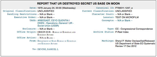 First, let’s draw our attention to a strange WikiLeaks document titled Report That UR Destroyed Secret Moon Base.