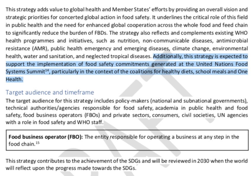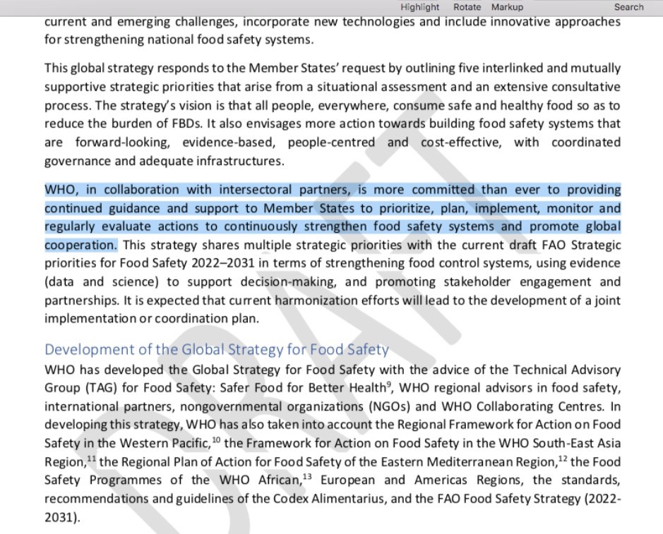 The document DRAFT WHO GLOBAL STRATEGY FOR FOOD SAFETY 2022-2030 [Towards stronger food safety systems and global cooperation] can be found in its entirety here.