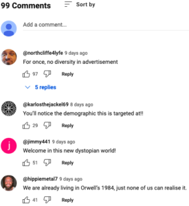 The comments on a YouTube video showcasing the disturbing ads hit the nail on the head and highlighted the globalist agenda driving the entire campaign.