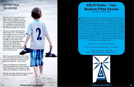 The triangular Boylover logo appears all throughout the magazine, including the logo for KBLR (BoyLoveR) Radio: