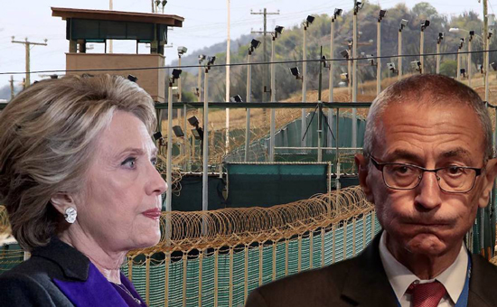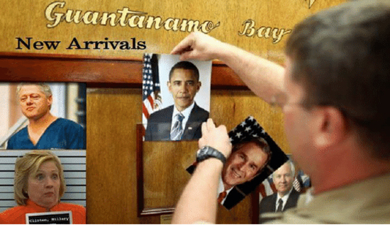 „Într-un moment istoric de justiție ce este am putea spune poetică, majoritatea autorilor principali (de origine americană) ai falsului «război declarat împotriva terorii» au fost acum ei înșiși trimiși în închisoarea militară din cadrul bazei americane navale din Gitmo, afirmă unele surse din Pentagon. George Soros, Peter Munk, Peter Sutherland, familia Bush, familia Podesta și mulți alții, care nu sunt în realitate decât niște «bunuri» pentru clanul Rothschild, au fost expediați pe cale aeriană la Guantanamo Bay pentru a fi judecați în fața tribunalelor militare, având în vedere că Departamentul Apărării a cheltuit 500 de milioane de dolari pentru a îmbunătăți condițiile din închisoare și pentru a trimite un efectiv mai mare de poliție militară și de forțe militare navale, afirmă sursele pe care le avem.” Așadar, ceea ce reiese foarte clar de la aceste surse independente este faptul că unii membri de rang înalt ai Statului din Umbră – dintre care mulți fac parte dintr-o rețea globală de pedofilie – au fost reținuți de Forțele Speciale SUA și au fost apoi trimiși la centrul de detenție Gitmo, unde urmează să rămână pe o durată nedeterminată, în timp ce dosarele lor vor fi judecate de tribunalele militare. Între timp, condițiile din închisoare au fost în mod semnificativ îmbunătățite, prin extinderea infrastructurii și prin aducerea unui efectiv mai mare de gardieni, spre a putea fi astfel bine primită „infuzia” de prizonieri VIP.