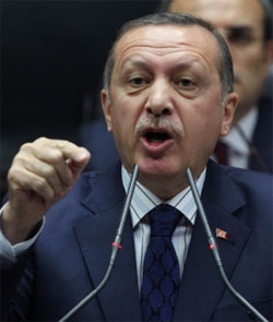 Erdogan a denunţat faptul că SUA nu îi recunosc pe kurzi drept terorişti şi a declarat că „regiunea s-a transformat într-o mare de sângeˮ. Sprijinul militar acordat de Statele Unite Partidului Uniunii Democratice (PYD), pe care Ankara îl consideră drept „teroristˮ, şi miliţiilor acestuia, cât şi Unităţilor de Protecţie a Poporului (YPG), constituie o sursă periodică de fricţiuni în ultimele luni între Washington şi Ankara.