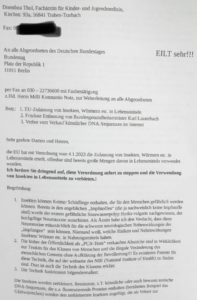 7. Încă o dată, ministrul federal al sănătății a eșuat, într-un mod extrem de iresponsabil, să informeze publicul cu privire la aceste riscuri pentru umanitate, nu a făcut nicio mențiune despre această tehnică de clonare și despre abuzul transmiterii prin intermediul insectelor și nu și-a asumat în niciun fel responsabilitatea pentru sănătatea umană. Prin urmare, solicit demiterea imediată a ministrului federal al sănătății, Karl Lauterbach! Acest om nu mai este acceptabil în funcția sa. Aceasta este valabil și în cazul șefului RKI, profesorul veterinar Lothar Wieler, dar acesta a demisionat deja.