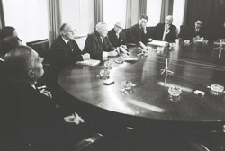 Postbelic, Erhard a conceput această relansare a Germaniei prin exporturi masive în Europa, iar aceasta presupunea subordonarea premeditată a suveranităţii naţionale unui organism internaţional. Acest organism a fost mai întâi Comunitatea Economică a Cărbunelui şi Oţelului, precursorul economic al Uniunii Europene, creat în aprilie 1951 de către şase state vest-europene. Dar înainte de crearea acestei pieţe comune, industria şi naziştii trebuiau deculpabilizaţi iar bancherii şi oficialii nazişti reintegraţi.