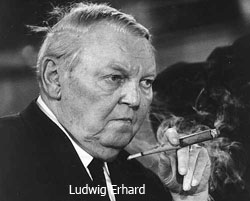 După 1948, în ciuda a şase ani de război, a bombardamentelor masive ale Aliaţilor şi a plăţii despăgubirilor de război, situaţia economică şi financiară a Germaniei era mai bună decât cea din 1936. O mare parte din contribuţia la această reuşită i s-a datorat lui Ludwig Erhard, care a fost pregătit special în acest scop încă din timpul războiului şi a devenit lider influent în Germania de după război, fiind cel dintâi ministru al economiei al RFG, iar între 1963 şi 1966, cancelar. În timpul Germaniei naziste, Erhard fusese o vreme director adjunct al unui Institut de cercetare de marketing, dar, între semi-oficial şi secret, a lucrat la scenarii economice de după război. Oficial astfel de studii erau relativ prohibite, dar Erhard a continuat să lucreze pe această temă, din 1942, prin ordin al „Reichsgruppe industrie” (Grupul Industrial al Reichului, unul din cele mai mari grupuri industriale create conform politicii „sincronizării” asociaţiilor de salariaţi a naţional-socialiştilor, fiind compus din 31 de alte grupuri economice şi departamente).