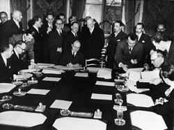 După ce, la 23 mai 1950, Adenauer s-a întâlnit cu Monnet pentru lămuriri, iar discuţiile franco-germane au început la Paris, la 20 iunie 1950, dată care a marcat primul moment când Republica Federală Germană a apărut ca un egal pe scena internaţională, cancelarul Adenauer l-a numit pe juristul ex-nazist Walter Hallstein în fruntea delegaţiei germane pentru negocierile asupra Planului de „integrare” a industriilor de oţel şi cărbune franceză şi germană, ceea ce acesta reuşeşte cu brio, fiind pregătit de ani buni să joace cartea germană. Astfel, în 1951, el reuşea să reunească, prin Tratatul de la Paris, mai multe ţări, Franţa, Germania, Italia, Belgia, Luxemburg şi Olanda în fondarea Comunităţii Europene a Cărbunelui şi Oţelului (European Coal and Steel Community), ECSC sau ceco.