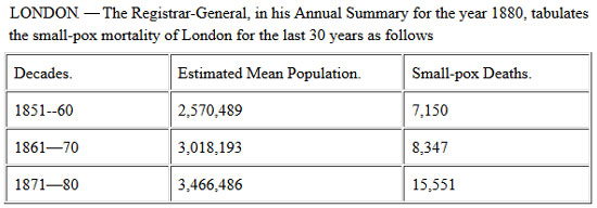 1911-13: smallpox deaths = 42, vaccine deaths = 31