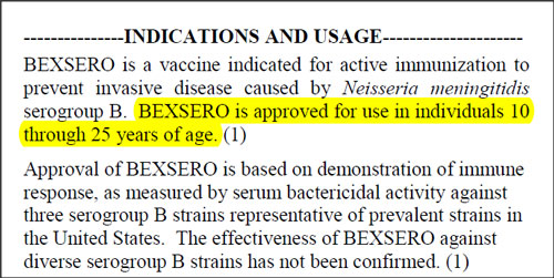 For example, in the UK, the Bexsero vaccine is recommended by the Establishment for babies between the ages of two and six months, a vaccine that, according to the manufacturer’s own vaccine insert, has only been approved for individuals from the ages of 10 to 25.