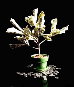 – Au moins deux et probablement bien davantage. Voyons… l’argent est mauvais.., l’argent est rare.., on ne peut recevoir d’argent pour accomplir l’œuvre de Dieu (c’est une pensée importante pour toi)… l’argent n’est jamais gratuit… l’argent ne pousse pas dans les arbres (alors qu’en fait, il y pousse)… l’argent corrompt…