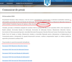 Pe 4 decembrie 2024, după cum bine vă amintiți, aceeași Administrație Prezidențială a României oferă „documentele” însoțite de textul următor: