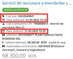 Vedeți mai jos că acest contract pentru serviciile de recrutate a membrilor în CA-ul Poștei Române a fost achiziționat în doar 19 min!