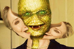 O altă teorie presupune că este vorba de fiinţe reptiliene, deci nonumane, care au posibilitatea ca în anumite condiţii să-şi schimbe forma, să ia formă umană. Susţinătorii acestei teorii spun că majoritatea conducătorilor lumii sunt de fapt fiinţe reptiliene. Aceste fiinţe reptiliene au instincte foarte puternice: sunt lacome, au simţul teritorialităţii foarte pronunţat, se organizează în sisteme ierarhice şi se hrănesc cu energia negativă din noi. De aceea ele trebuie să producă în mod continuu frustrare, dezamăgire, suferinţă şi durere. Oamenii spirituali ne spun că forţa răului este o entitate energetică care se poate întrupa şi manifesta. Această entitate se întăreşte ori de câte ori cineva gândeşte, vorbeşte sau înfăptuieşte ceva negativ.