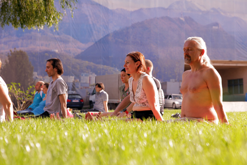 Programul, susținut în mod subtil-telepatic de profesorul de yoga Gregorian Bivolaru, a constat din exerciții specifice HATHA YOGA, fiind exemplificate trei ASANA-e: BHUJANGASANA, SUKHASANA și VAJRASANA, precum și din două meditații în spirală yang, cu tema „Inima lumii” și „De la pacea divină lăuntrică la pacea planetară pentru toți”.
