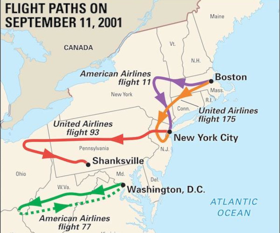 Pour rester simple, je n’ai pas inclus dans l’équation le vol UA93 qui s’est écrasé à Shanksville, mais on remarque, d’une part, que ses pirates de l’air font partie des 14 de la liste israélienne de Hollywood, d’autre part, que l’aéroport d’où il aurait décollé, à savoir l’aéroport de Newark dans le New Jersey, sous-traitait également sa sécurité à Huntleigh. Il faut donc considérer que ce vol faisait partie du complot israélien, ce qui permet d’avancer une hypothèse sur ce qu’il s’est passé à Shanksville.