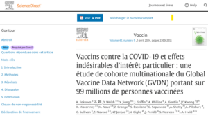 Les participants français comprenaient 99.068.901 personnes vaccinées. Au total, 183.559.462 doses de BNT162b2, 36.178.442 doses d’ARNm-1273 et 23.093.399 doses de ChAdOx1 ont été administrées dans les sites participants au cours de la période d’étude. Les périodes à risque suivant les calendriers de vaccination homologues ont contribué à 23.168.335 années-personnes de suivi. Des ratios OE avec LBCI > 1,5 ont été observés pour le syndrome de Guillain-Barré (2.49, IC à 95% : 2.15, 2.87) et la thrombose du sinus veineux cérébral (3.23, IC à 95% : 2.51, 4.09) après la première dose du vaccin ChAdOx1. L’encéphalomyélite aiguë disséminée a montré un ratio d’efficacité de 3.78 (IC à 95% : 1.52, 7.78) après la première dose du vaccin à ARNm-1273. Les ratios d’efficacité de la myocardite et de la péricardite après BNT162b2, ARNm-1273 et ChAdOx1 ont augmenté significativement avec des LBCI > 1,5.