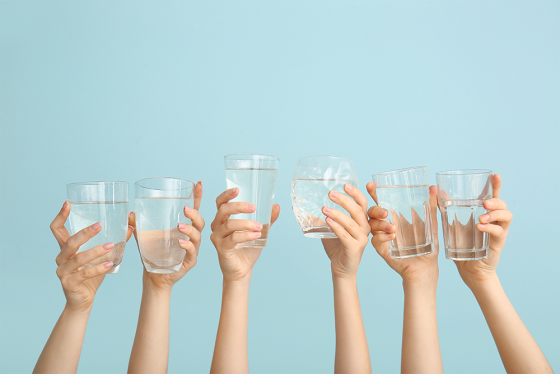 - 8 verres d’eau par jour : Boire 8 verres de liquides (eau, bouillon…) par jour d’une contenance de 25 cl permet de couvrir l’équivalent de 2 litres d’eau.