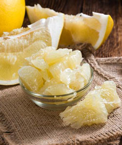 Un pomelo est un délicieux agrume, originaire de l’Asie du Sud-Est et des régions voisines, qui ressemble énormément à un gros pamplemousse. Le nom scientifique de ce fruit est Citrus maxima, due à sa taille, mais peut également être attribué grâce aux avantages que celui-ci peut offrir sur la santé ! Les pomelos sont d’un goût sucré, doux et dispose d’une croûte très épaisse sous l’écorce externe qui est vert pâle ou jaune. La chair elle-même est de couleur blanc pâle et est souvent adoucit avec sucre.