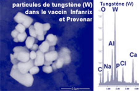 Question à toutes les institutions nationales et européennes de Santé ainsi qu’à tous les partis politiques européens : Pourquoi y a-t-il des nano composants de tungstène, titane, zirconium, hafnium, strontium, aluminium, nickel, antimoine, bismuth, cérium, cuivre, plomb, étain, baryum, vanadium…, tous plus toxiques les uns que les autres dans les vaccins diffusés à l’échelle mondiale par les laboratoires GlaxoSmithKline, Pfizer, Berna Biotech, Sanofi Pasteur, Novartis, Wyeth Pharmaceutical, Baxter, etc…