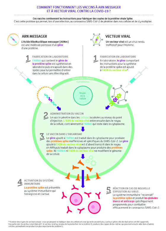 Selon le site du Ministère de la Solidarité et de la santé : « L’ARN messager ne pénètre jamais dans le noyau de la cellule et n’a aucune action sur le génome. Autrement dit, il ne modifie pas l’ADN. » [3]
