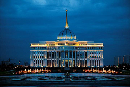 LE PALAIS PRÉSIDENTIEL : Un dôme surmonte le palais et représente le principe féminin, en opposition à la tour Bayterek, de symbolique phallique, le principe masculin.
