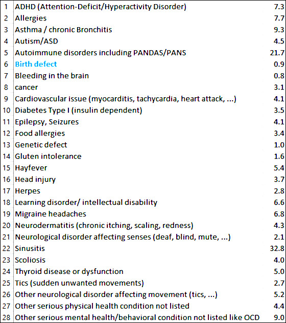 J’ai demandé à 10.000 parents de me parler de leurs enfants et j’ai énuméré une vaste gamme de maladies chroniques, y compris deux contrôles négatifs pour valider les résultats.
