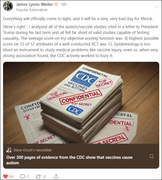 Steve a raison. J’ai analysé toutes les études sur l’autisme et la vaccination citées dans une lettre adressée au président Trump lors de son 1er mandat. Aucun n’était capable de tester valablement le lien causal. L’épidémiologie n’est pas un instrument adéquat pour étudier des problèmes comme les dommages vaccinaux ; et même lorsque ça l’est, et qu’une association très forte a pu être démontrée, le CDC a toujours tout fait pour l’enterrer.
