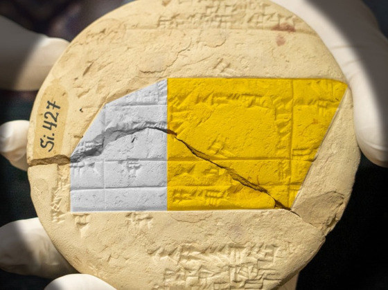 Sur la tablette Si.427 sont représentées des parcelles. La partie en jaune est à vendre, et les tracés permettent de démarquer les frontières des différents terrains. En haut, un triangle rectangle est notamment formé par trois lignes de démarcation. Les mesures de ses côtés sont données : 5, 12 et 13. Il s’agit bien d’un triplet pythagoricien. Au dos de la tablette, le texte, en écriture cunéiforme, décrit aussi le terrain – des marécages, une aire de battage… – et donne le nom de son propriétaire. Enfin, en bas du verso figure un grand nombre qui n’a pas encore livré ses secrets…