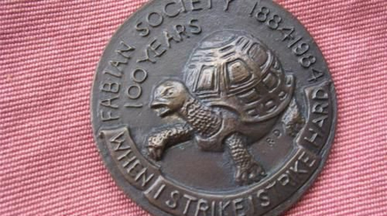 « Quand je frappe, je frappe fort », référence à l’action lente mais sûre dont se targuent les socialistes fabiens, pas révolutionnaires mais « gradualistes », avançant par petits pas discrets, plutôt que grands changements.