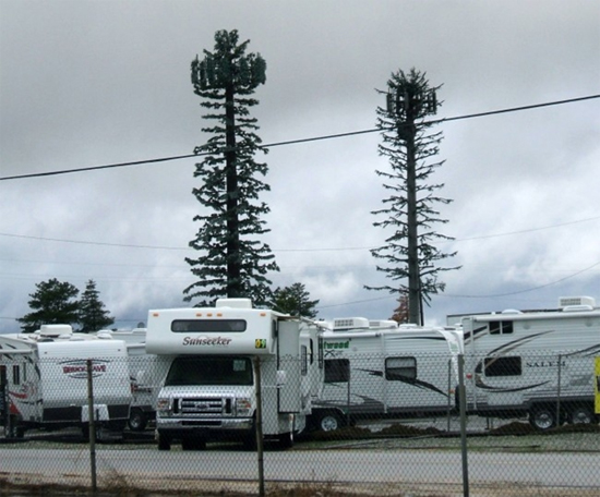 Autre site débordant de photos, celui du constructeur Larson Camouflage, qui délivre ses trucs de fabriquant : « Les branches de nos pins sont des antennes en soi, courbées de manière à cacher ce qui doit l’être. Le reste est dissimulé dans le tronc. Le tout fonctionne très bien avec les fréquences radio et est très joli.