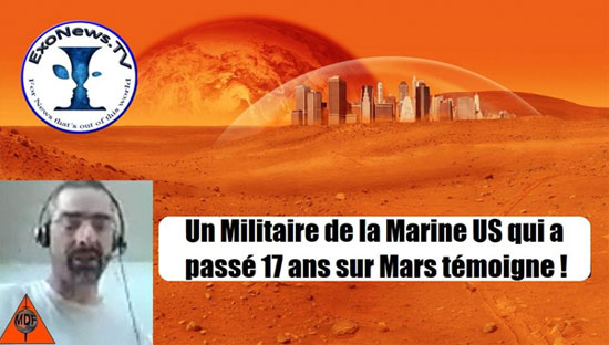 Il dit aussi qu’il y a 2 espèces indigènes sur Mars, toutes 2 très intelligentes, l’une d’elle est une race de reptiliens très agressifs quant à la défense de leur territoire. L’autre espèce est insectoïde, également capable de défendre son territoire. D’après lui, ces martiens indigènes ne sont pas particulièrement intéressés à l’expansion de leurs territoires mais uniquement au maintien de ce qu’ils ont.