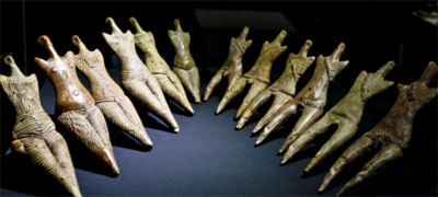 Installés dans une région où le relief, le climat et la terre étaient propices à l’agriculture et à l’élevage, les Cucuteni savaient parfaitement exploiter leur environnement. Aussi lui vouaient-ils un véritable culte comme en témoignent certains vases et objets en formes d’oiseaux ou de quadrupèdes mais aussi de nombreuses statuettes anthropomorphes. Daniel Garvân s’arrête ainsi devant une collection singulière : « soborul zeițelor ». Il s’agit de 21 petites statuettes de femmes et leur tabouret en argile retrouvées entre deux vases à Moinești, dans le județ de Bacău. « C’est un hommage à la fécondité des femmes et par là-même à la fertilité de la déesse nature », explique-t-il. « Comme vous le voyez, toute l’attention est portée sur la zone de reproduction et sur leurs fesses qui sont représentées de façon emphatique. Il n’y a pas d’expression sur leur visage et elles n’ont même pas de bras. »