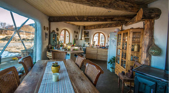 Le cercle arctique évoque des images de conditions météorologiques extrêmes, mais une famille a réussi à créer leur propre oasis confortable dans les limites de la Norvège. La famille Hjertefølger vit sur l’île Sandhornøya en Norvège, où ils ont commencé leur voyage pour une vie durable, depuis 2013. Leur maison en torchis sur trois étages, construite à partir de sable, d’eau, d’argile et d’autres matériaux organiques ressemble à un dôme, avec des panneaux solaires, est réalisée par Solardome.