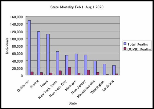 La Californie a connu le plus grand nombre de décès, ce à quoi on pouvait s’attendre car elle a la plus forte population. Mais vérifiez le nombre de décès liés au COVID-19. La Californie a connu un pourcentage de décès dus au COVID bien inférieur à celui de New York, du Michigan, du New Jersey et du Massachusetts. La Californie a connu environ 6 % de mortalité globale due à la COVID, contre près de 38 % pour la ville de New York et 18 % pour l’État de New York. Examinez les mesures prises par l’État et la ville de New York pour faire face au virus et essayez de justifier l’affirmation du Dr Fauci selon laquelle ils ont « fait les choses correctement ». Est-il au courant de ces données ?