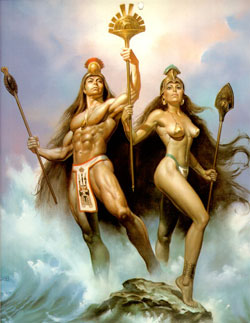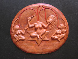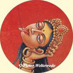 Cette représentation iconographique de la Grande Puissance Cosmique CHINNAMASTA de la tradition hindoue est pratiquement identique à celle de la Grande Déesse VAJRA DAKINI de la tradition du bouddhisme tantrique de Tibet.
