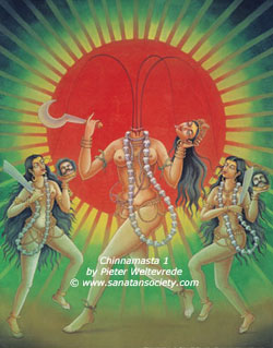 L’image terrible de Chinnamasta, la sixième Grande Puissance Cosmique du panthéon hindou, est la plus expressive modalité de suggérer la transformation fondamentale de l’être humain de renoncer à l’individualité limitée et éphémère de l’ego, pour qu’elle soit résorbée de façon extatique dans la plénitude de la Conscience Universelle de Dieu le Père.