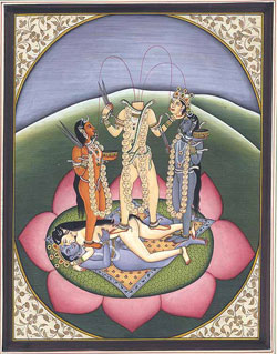 La plus directe voie d’adoration pleine de sincérité de CHINNAMASTA est celle par laquelle le processus de la méditation est centré surtout sur le sujet conscient, et l’attention est retirée des objets du milieu environnant. L’idée est que le sujet qui médite ne peut être un objet de la perception du mental. Tout ce qui est connu par le mental comme objet de la perception, incluant l’ego ou l’individualité personnelle, est extérieur à notre vraie nature essentielle. Cette rétraction dans le sujet qui perçoit nous conduit graduellement à la révélation de notre Soi immortel, ATMAN.