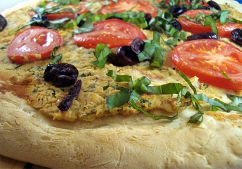 Une autre purée à compléter ou remplacer la sauce tomate est celle de haricots blancs assaisonné de persil haché. Ajoutez des tranches de tomates fraîches, des olives noires dénoyautées et quelques feuilles de basilic frais et vous obtiendrez une pizza végétalienne sans pareille !