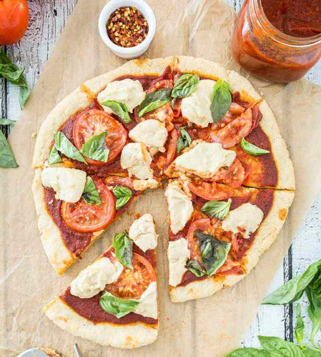 La pizza Margherita est un véritable classique. Pour la préparer sans utiliser des produits d’origine animale, il faut tout simplement remplacer la mozzarella avec un fromage végétale. Les autres ingrédients principaux restent les mêmes – de la sauce tomate et du basilic.
