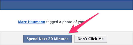 Enfin, les applications peuvent exploiter l’incapacité des personnes à prédire les conséquences d’un clic. Les gens ne devraient pas prévoir intuitivement le vrai coût d’un clic comme il est présenté. Les vendeurs utilisent les techniques du « pied dans la porte » en venant demander une petite requête inoffensive qui commence avec (« un seul clic pour voir si votre tweet a été retweeté ») et l’engrenage part de là (« Pourquoi ne restez pas vous pas quelque temps ? »). Pratiquement tous les sites web d’engagement emploient cette astuce.