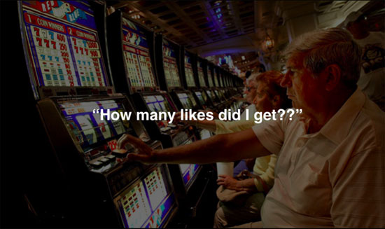 Est-ce que cet effet fonctionne vraiment sur les personnes ? Oui. Aux États-Unis, les machines à sous rapportent plus d’argent que le baseball, les films, et les parcs à thèmes combinés. Par rapport aux autres jeux de hasard, les personnes sont 3 à 4 fois plus rapidement « impliqués » avec les machines à sous d’après la professeure Natasha Dow Schull, auteur de L’addiction par le design.