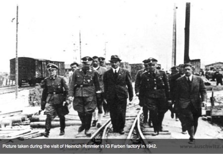 Plus tard, lors de la construction des installations, Göring autorisera Farben à utiliser des prisonniers des camps de concentration d’Auschwitz. Farben contrôlait aussi les mines qui devaient produire les 2 millions de tonnes de charbon par an nécessaires.