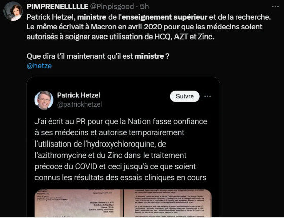 Il est au moins un ministre qui avait tenté d’obtenir l’autorisation de l’hydroxychloroquine en 2021. Réjouissons-nous et rendons lui hommage en espérant qu’il reste ferme sur ses positions :