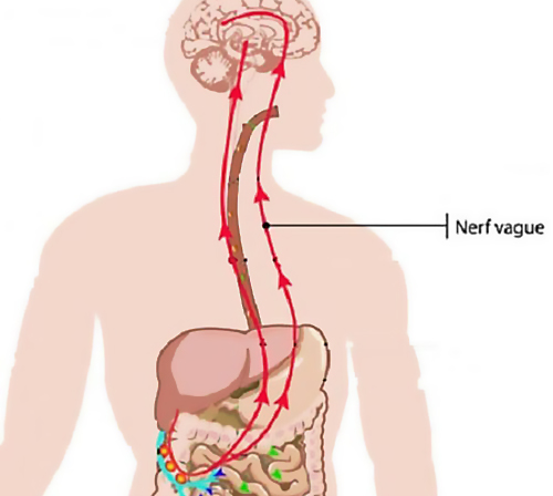 Le nerf vague est le nerf le plus long et le plus complet du corps humain. Il connecte le cerveau à de nombreux organes importants du corps, dont l’intestin (intestins, estomac), le coeur et les poumons.