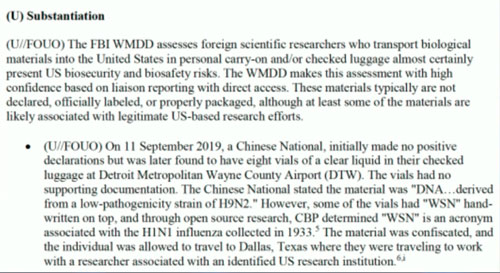 rapport FBI: Le rapport du Chemical and Biological Unit of FBI, du 13 novembre 2019, est