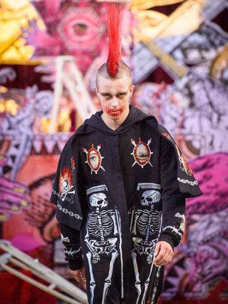 La rappeuse Brooke Candy et le drag-queen Violet Chachki étaient dans la troupe de modèle fortement maquillés et se pavanaient sur une musique sombre des années 80 ainsi que sur de la musique de danse du ventre.