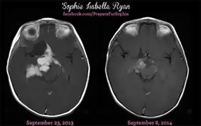 Voici encore un exemple d’un bébé qui a été guérie d’un cancer du cerveau, sans être soumis aux cruautés de la chirurgie ou de la radiothérapie. Au lieu de cela, il a reçu l’huile de cannabis via sa tétine. Le bébé a été complètement guéri dans huit mois. Après deux mois de progrès observés, l’oncologue pédiatrique qui avait donné le diagnostic a annulé tous les traitements futurs qui pourraient causer plus de dégâts.