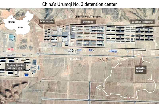 « La Chine a d’abord nié leur existence, puis, sous le feu des critiques internationales, a déclaré en 2019 que tous les occupants avaient « obtenu leur diplôme. » Mais la visite de l’AP à Dabancheng, l’imagerie satellite et les entretiens avec des experts et d’anciens détenus suggèrent que si de nombreux « centres de formation » ont effectivement été fermés, certains comme celui-ci ont simplement été convertis en prisons ou en centres de détention provisoire. De nombreuses nouvelles installations ont également été construites, notamment un nouveau centre de détention de 85 acres situé en bas de la route du n° 3 à Dabancheng, qui a été construit en 2019, comme le montrent les images satellite.