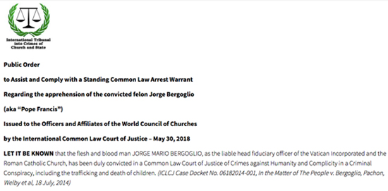 Kevin avait téléchargé une vidéo sur son compte Youtube quelques années plus tôt, décrivant en détail un document que lui et ses collègues avaient produit. Le titre se lit comme suit : « Le pape François est désigné par un ancien initié de la junte argentine comme le » moteur principal « du réseau de la traite des enfants. »