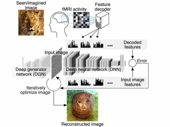 Kamitani a dit que l’équipe avait étudié des méthodes pour reconstruire une image que la personne ne peut voir qu’en regardant l’activité cérébrale de la personne. Il a poursuivi en disant que les méthodes précédentes avaient été de supposer que les images consistaient en de simples formes ou des pixels. Cependant, on sait maintenant que le cerveau peut traiter l’information visuelle de façon hiérarchique en prenant différents niveaux de caractéristiques et de composantes de plusieurs complexités différentes